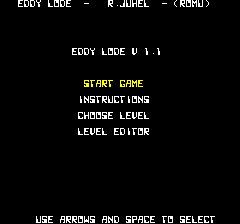 I added the title screen (soon a picture which would be nicer than only text) and the menu to access the different parts of the game... You can notice the lode runner-like redefined characters set.