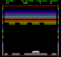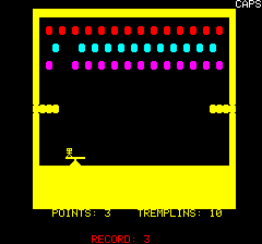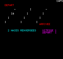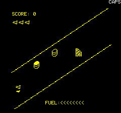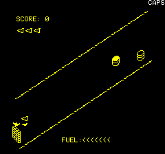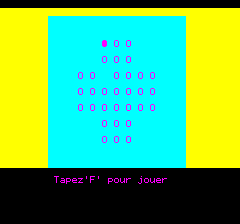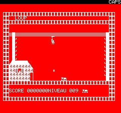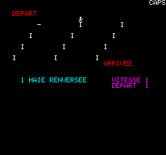 | Written by R. Juhel (1986) in basic/text mode, this listing was published in the french magazine TILT Hors Série n°3. You can't go up and down like in the original game. |