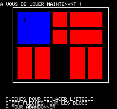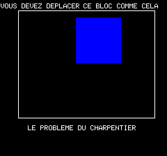 | No author mentioned in this listing. Taken from Hebdogiciel. A puzzle game in which you have to move the blue box from the top left corner to the top right corner... Good luck. |