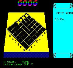 | Download GOOG.TAP (game as 1 file, slow drawing of the board) Download GOOG.DSK (zipped jasmin disk of the game, the main screen is loaded as a separate file and hence is much faster under euphoric) |