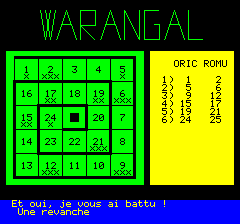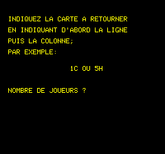 | No author mentioned in this listing. Found it on a floppy... Memory game for the oric in which you have to match the cards. |